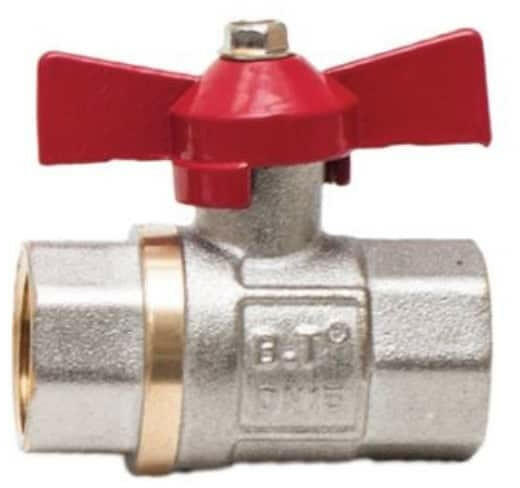 Olasz gyártmányú fém golyóscsap mindkét oldalán 1" belső menettel, pillangós zárócsappal.