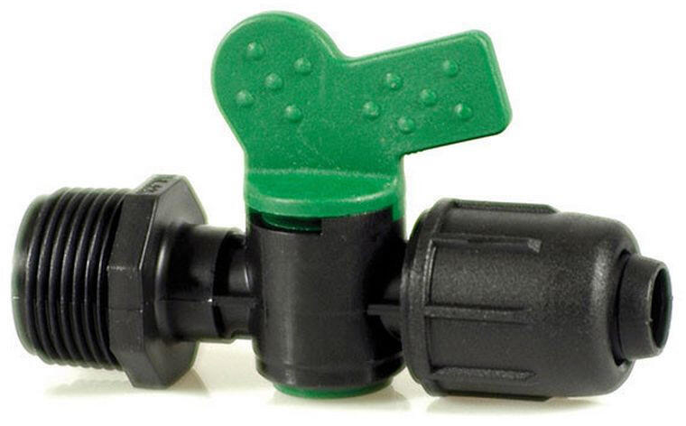 Műanyag csap 16-os PE csőre 3/4" külső menettel Egyik oldalán 16-os PE csőre kúpos, szorítógyűrűs csatlakozással, illetve másik oldalán 3/4"-os külső menettel ellátott műanyag csap. Csövek - akár csepegtető cső - szakaszolására, ideiglenes kizárására, nyomásszabályzására alkalmas, ahol a nyomás nem haladja meg a 3-4 bar-t. Könnyen, gyorsan beépíthető.